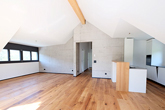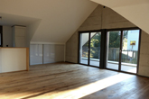 Die beiden Dachwohnungen bieten eine tolle Aussicht ins Grüne. Durch die hohen Wände, wirken sie sehr offen und modern und bieten viel Platz.