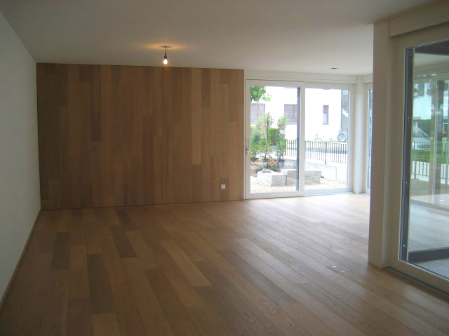 Zwei 4.5 Zimmer Gartenwohnungen mit Terrasse und Gartenanteil, zwei 4.5 Zimmer Wohnungen im 1.OG mit Terrasse und eine 4.5 Zimmer Dachwohnung mit Loggia und Terrasse.